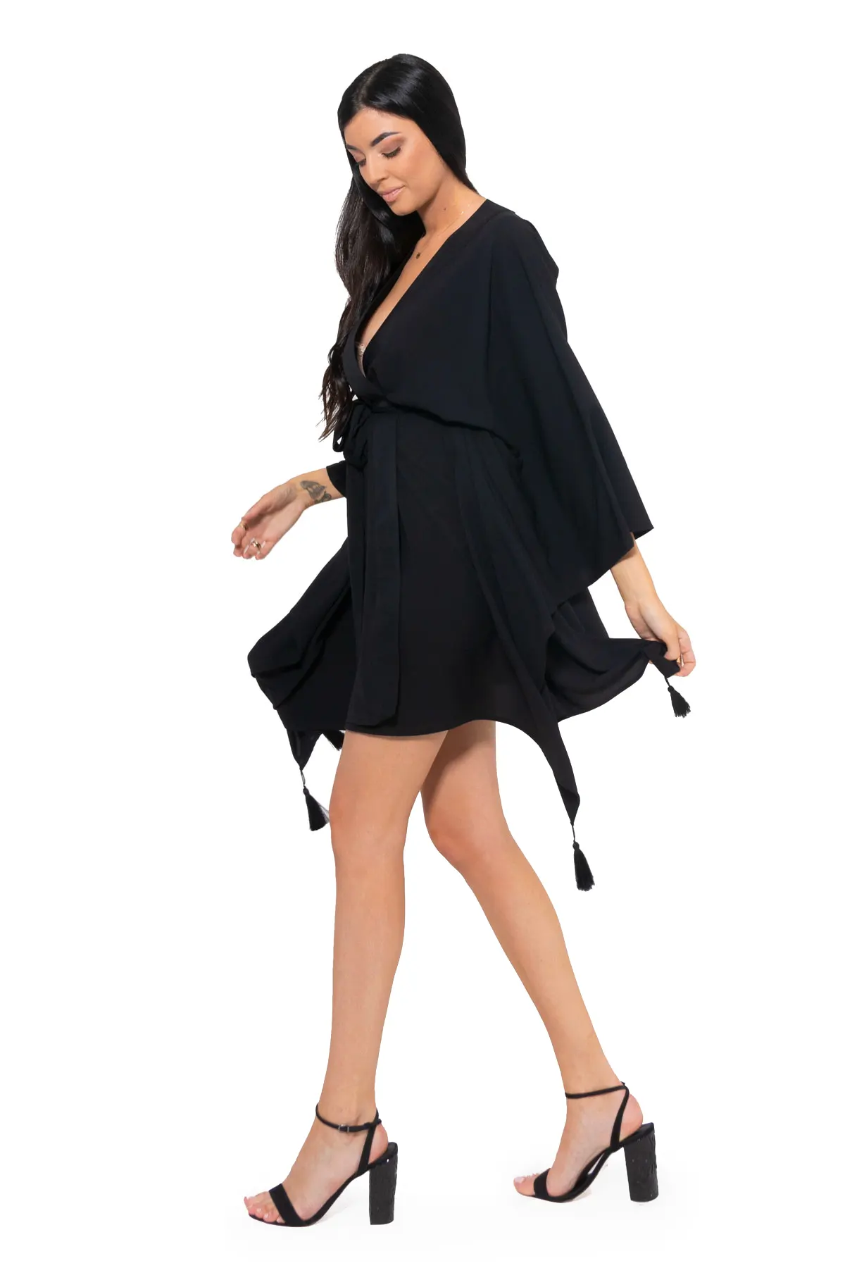 Kimono Kyoto – Classy black (Wings gold) Midi